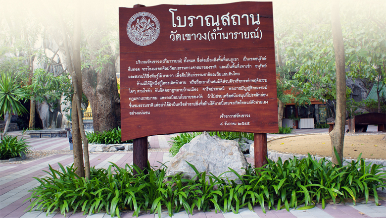 ตั้งอยู่ที่วัดเขาวง บ้านเขาวง หมู่ ๕ ตำบลเขาวง อำเภอพระพุทธบาท ห่างจากตัวอำเภอพระพุทธบาท ประมาณ ๓ กิโลเมตร ที่ปากถ้ำมีอักษรมอญโบราณ (ปัลลวะ) ซึ่งเป็นแบบอักษรของชาวอินเดียฝ่ายใต้ ปรากฎมีในภาคกลาง และภาคใต้ของประเทศไทยในสมัยก่อนสุโขทัย จนวิวัฒนาการมาเป็นอักษรขอมและ มอญโบราณ ซึ่งพ่อขุนรามคำแหงมหาราชทรง นำมาดัดแปลงประดิษฐ์เป็นต้นกำเนิดอักษรไทย จนถึงทุกวันนี้อักษรจารึกถ้ำนารายณ์ มีข้อความ ๓ บรรทัด ถูกจารึกในสมัยพุทธศตวรรษที่ ๑๒ (ยุคทวาราวดี) ในยุคนั้น ชนชาติมอญมีอำนาจรุ่งเรือง อักษรจารึก เขียนเป็นคำบอกร้อยแก้ว กรมศิลปากรแปลไว้ว่า